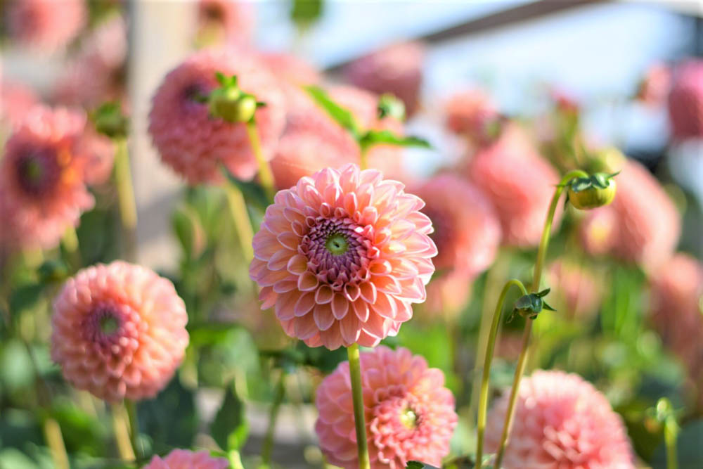 Dahlias do not continue to open once cut so pick when blooms are ¾ of the way open. Check the back of the flower head to check all the petals are perfect. The petals turn papery, drop and lose colour once they start to go over. Deadhead flowers to give plants back the energy to ripen the next flower rather than work on producing seed.