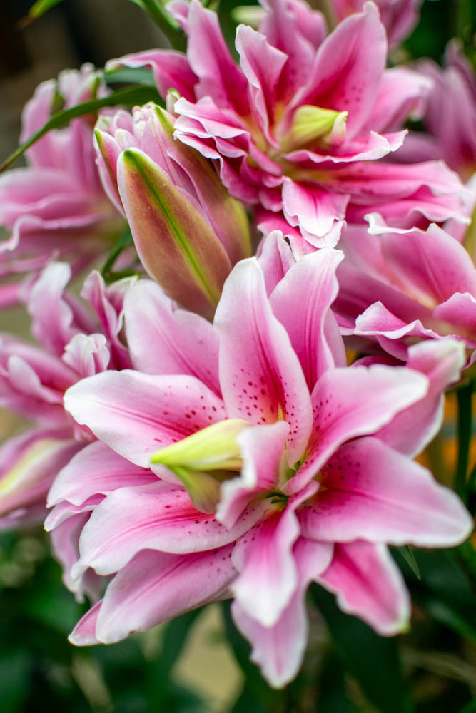 This pink Oriental lily is a shade darker than Isabella, with delicate white edges and of course, pollen free. The trumpet in the middle is particularly beautiful with flashes of green markings. Standing 90cm tall in my garden with fine dark green leaves.